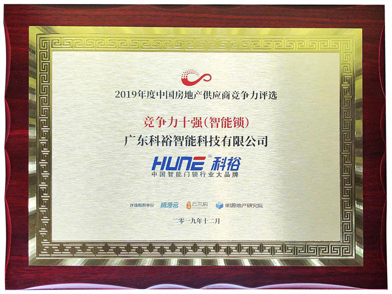 其中,科裕智能門鎖在眾多智能鎖品牌中脫穎而出,實力榮膺“中國房地產行業供應商競爭力十強”,是行業內對科裕品牌實力的認可和肯定。