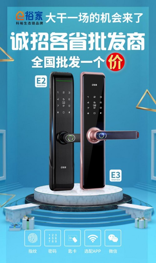 為了進一步布局全國終端戰略,全面實施科裕智能鎖大覆蓋,現誠摯地邀請招全國批發商加入科裕,共烹財富盛宴,實現合作共贏!