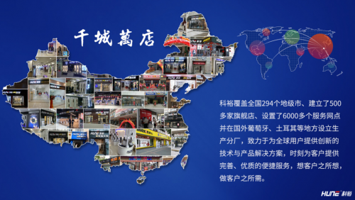 科裕公司具強大的銷售和售后實力,在國內建立了完備的銷售網絡和售后隊伍,產銷量處國內行業前列,為如今二萬多酒店用戶及幾十萬家庭用戶提供完善優質方便的服務。現已有多家下屬公司及分公司,在全國主要城市設立三十多個辦事處和技術服務中心,三百多個經銷網點。在國外(韓國、美國、新加坡、土耳其、印度、柬埔寨、泰國、蒙古國、阿根廷、希臘、匈牙利、丹麥、西班牙、意大利、埃及、阿拉伯)、香港、臺灣、等地區設立多個服務網點。