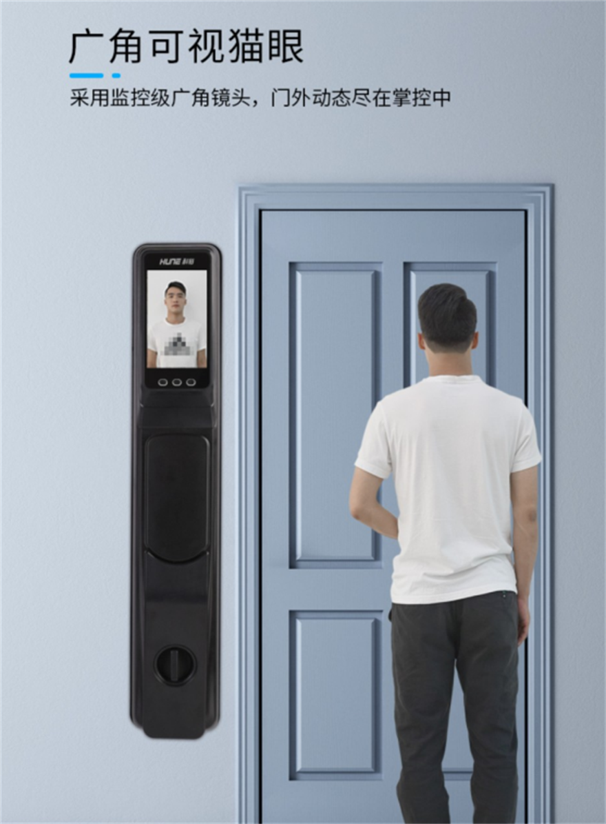 同時(shí),搭載高清攝像頭,其120°的大廣角視野可覆蓋1.2至2米范圍,無(wú)需踮腳、彎腰,大人小孩都適用,老人也不用擔(dān)心指紋磨損問(wèn)題,全家人都適用的解鎖方式。