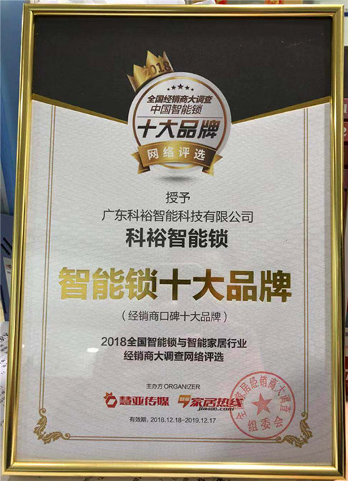 從此次評選活動我們可以看出,科裕智能鎖等作為行業內一線品牌,在市場上得到了消費者的認可。