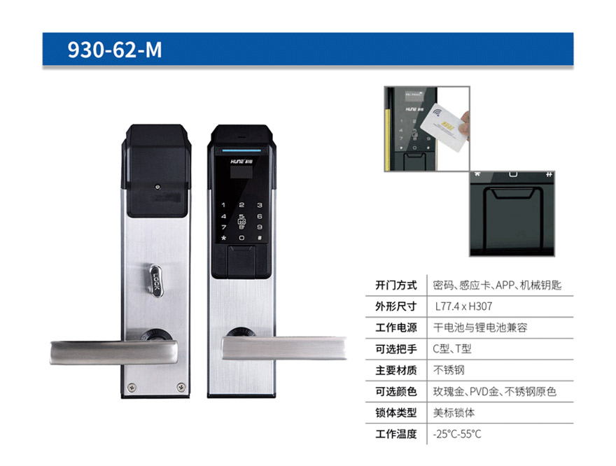開(kāi)門(mén)方式:感應(yīng)卡,APP,機(jī)械鑰匙,密碼,臨時(shí)密碼