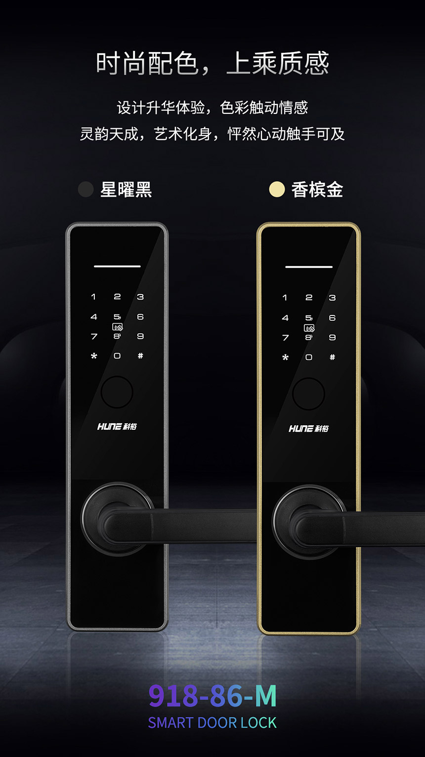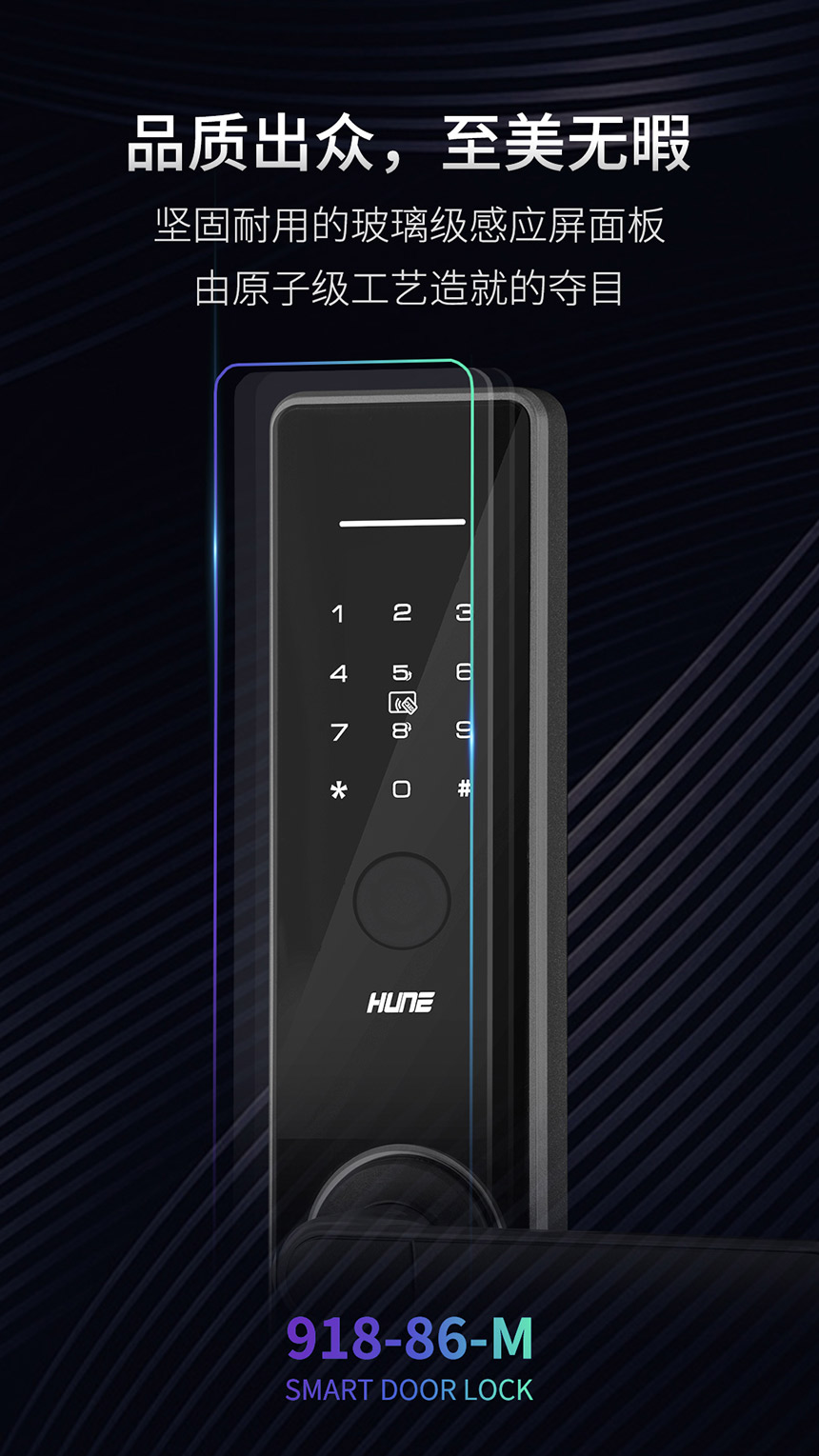 1、外觀簡約時尚,設計層次豐富,金屬與亞克力的搭配更具格調,人機工程學一握開把手設計,使用舒適,符合時代潮流雙軸套游離把手有效防松動,,多種開鎖方式,可手機遠程操控, 科技感十足;