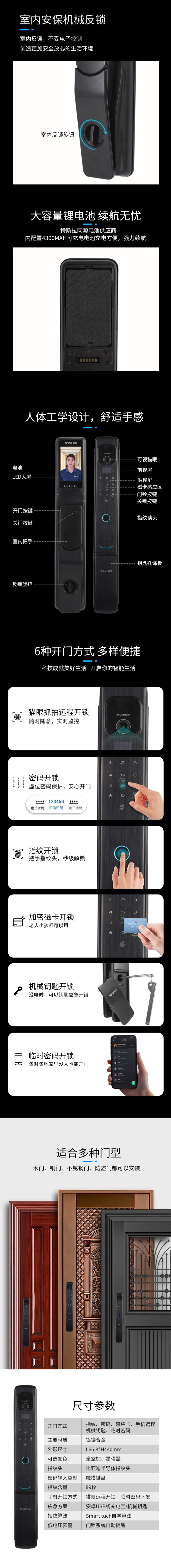 開門方式:指紋,密碼,感應卡,機械鑰匙,微信小程序,手機APP