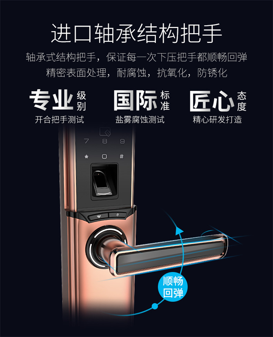 1、跑車腰線仿生設計,盡顯高端奢華,大滑蓋設計防塵防潮更好,5A鉆化屏,使用更靈敏,雙軸套游離把手有效防松動,萬寶至電機,快速秒開門,多種開鎖方式,可手機遠程操控,科技感十足