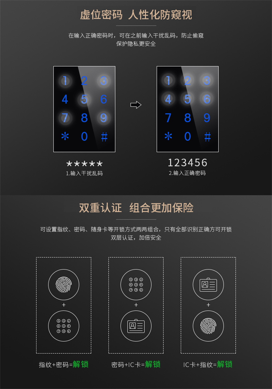 開門方式:指紋,密碼,感應卡,機械鑰匙