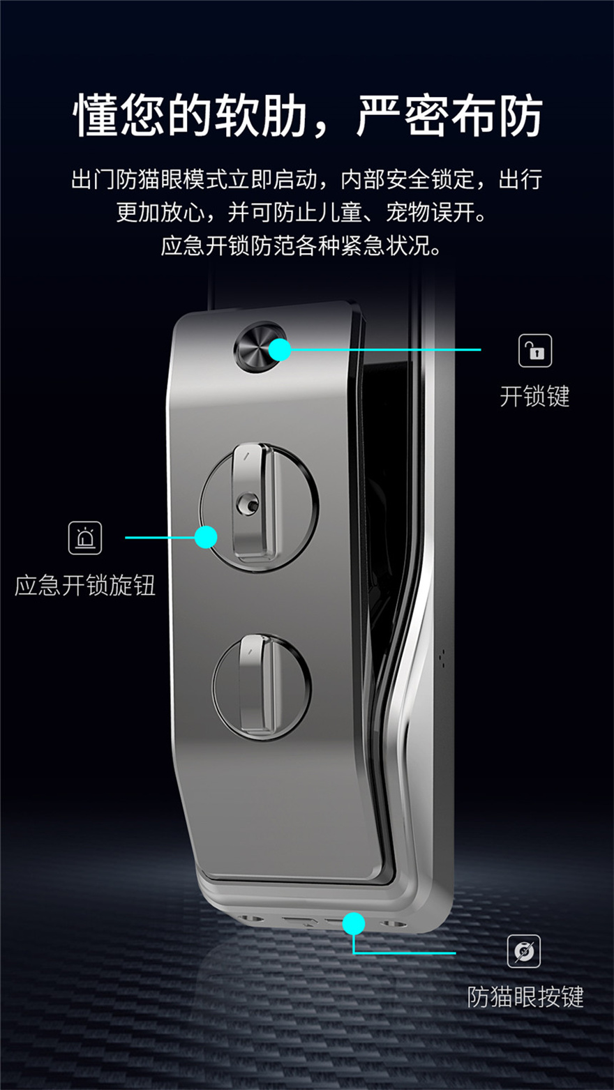 1、外觀簡(jiǎn)約時(shí)尚,設(shè)計(jì)層次豐富,鈦合金人機(jī)工程學(xué)把手,使用舒適,20年質(zhì)感,不褪色,跑車流線型設(shè)計(jì),動(dòng)感十足,多種開鎖方式,可手機(jī)遠(yuǎn)程操控,科技感十足
